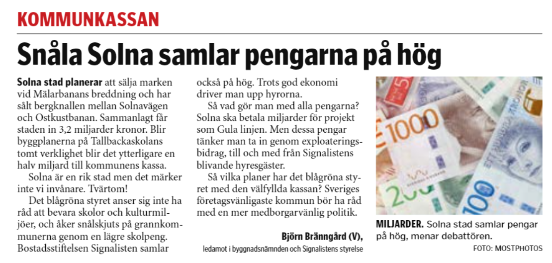 Snåla Solna samlar pengarna på hög