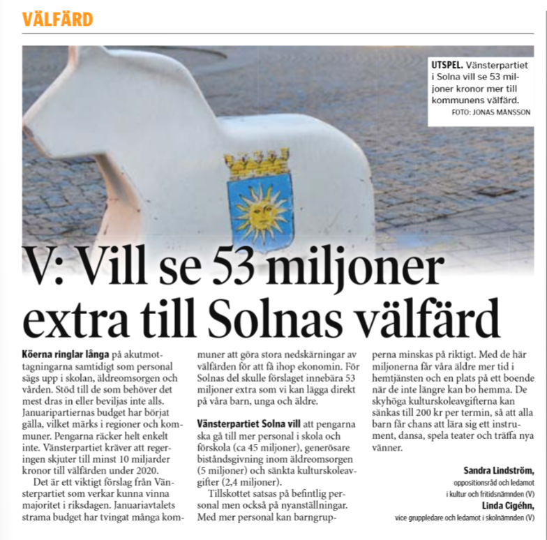 Årets första kommunfullmäktige i Solna hölls 24 februari. Vänsterpartiet var givetvis på plats och våra ledamöter var uppe i talarstolen flera gånger under kvällen.