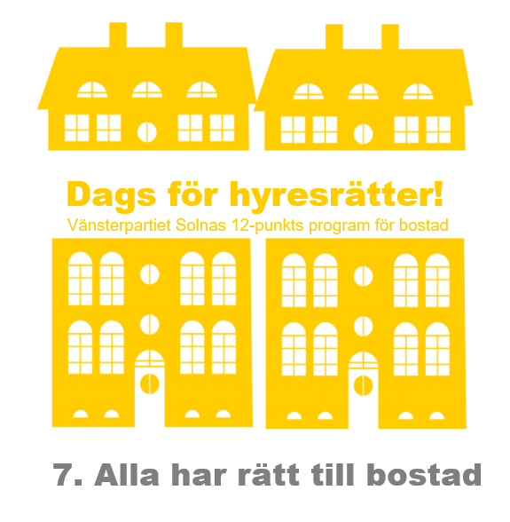 Vänsterpartiet Solna har under lång tid påpekat behovet av hyresrätter till rimlig hyra i kommunen. Det är inte enbart nyanlända som drabbas. Även studenter och andra solnabor som inte har råd att köpa dyra bostadsrätter drabbas av den förda politiken. Vi tycker att det är hög tid för Solna att se till att det finns hyresrätter. Det ska finnas bostäder för alla invånare som vill bo kvar i kommunen, inte bara för de rikaste.